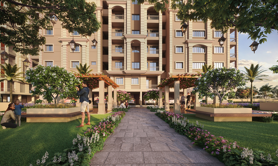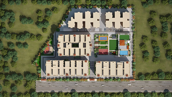 - Open spaces between the buildings have been planned to accommodate pavilions, sit outs, and play courts for youngsters/kids.